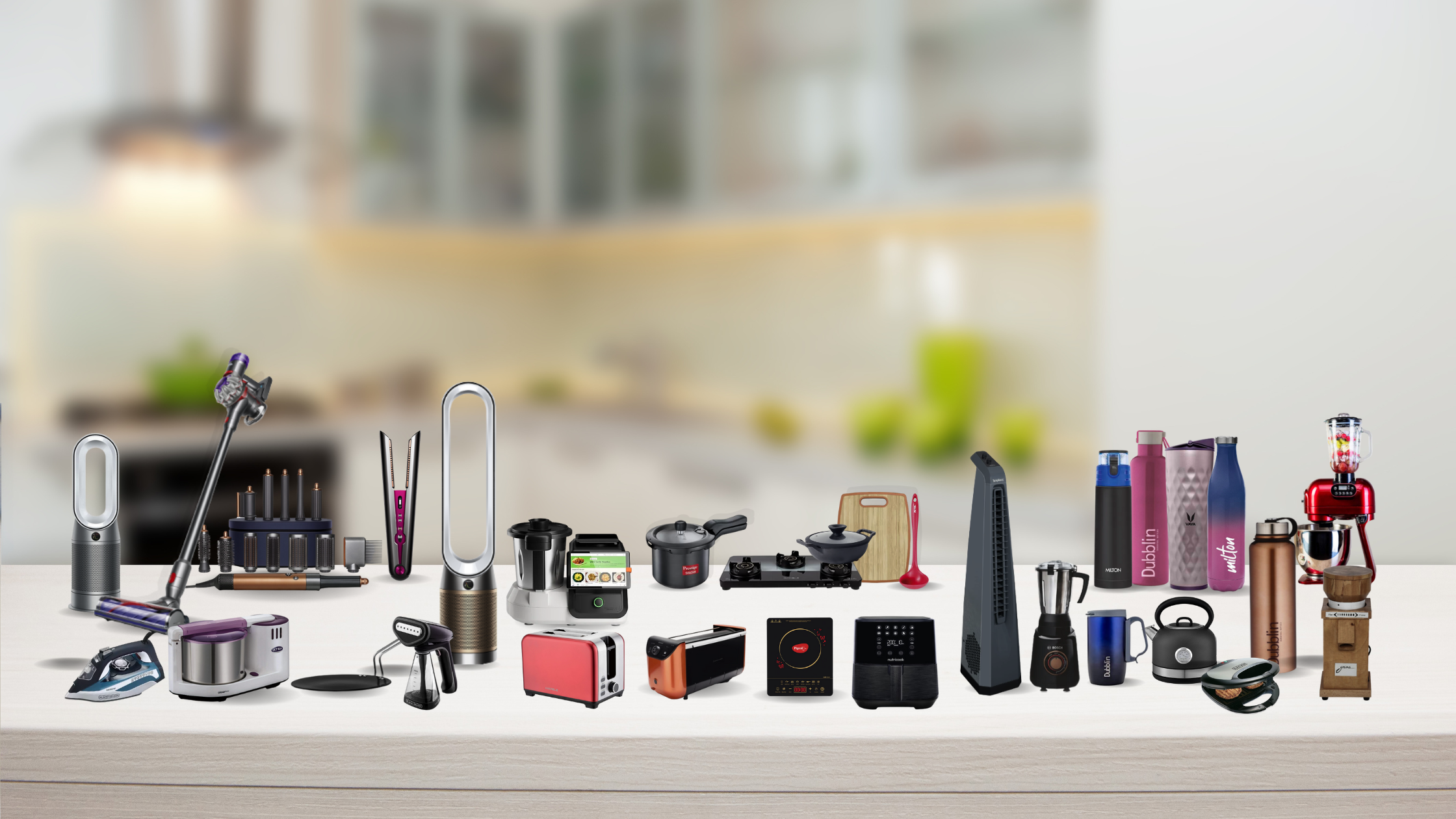 We have more than 50 Brands. To name a few we have Pigeon, Black + Decker, Dyson, Nutribullet, Karcher, Bosch, Prestige, Evochef Smart Dosa Maker, DelishUp Cooking Assistant and many more