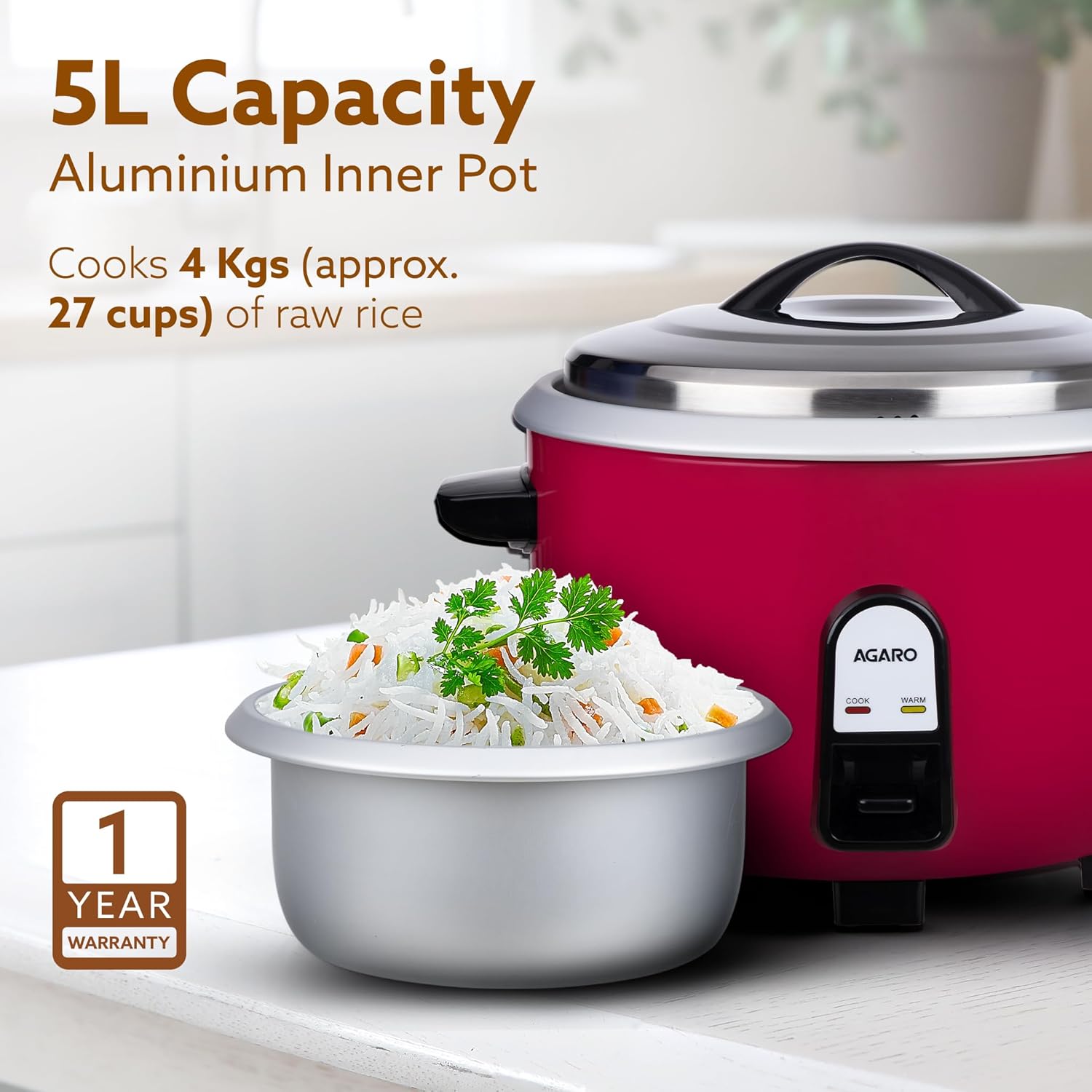 Enjoy quick, one-touch rice cooking with this 5L electric rice cooker featuring a durable aluminium pot, stainless steel lid, and a powerful 1500W performance.