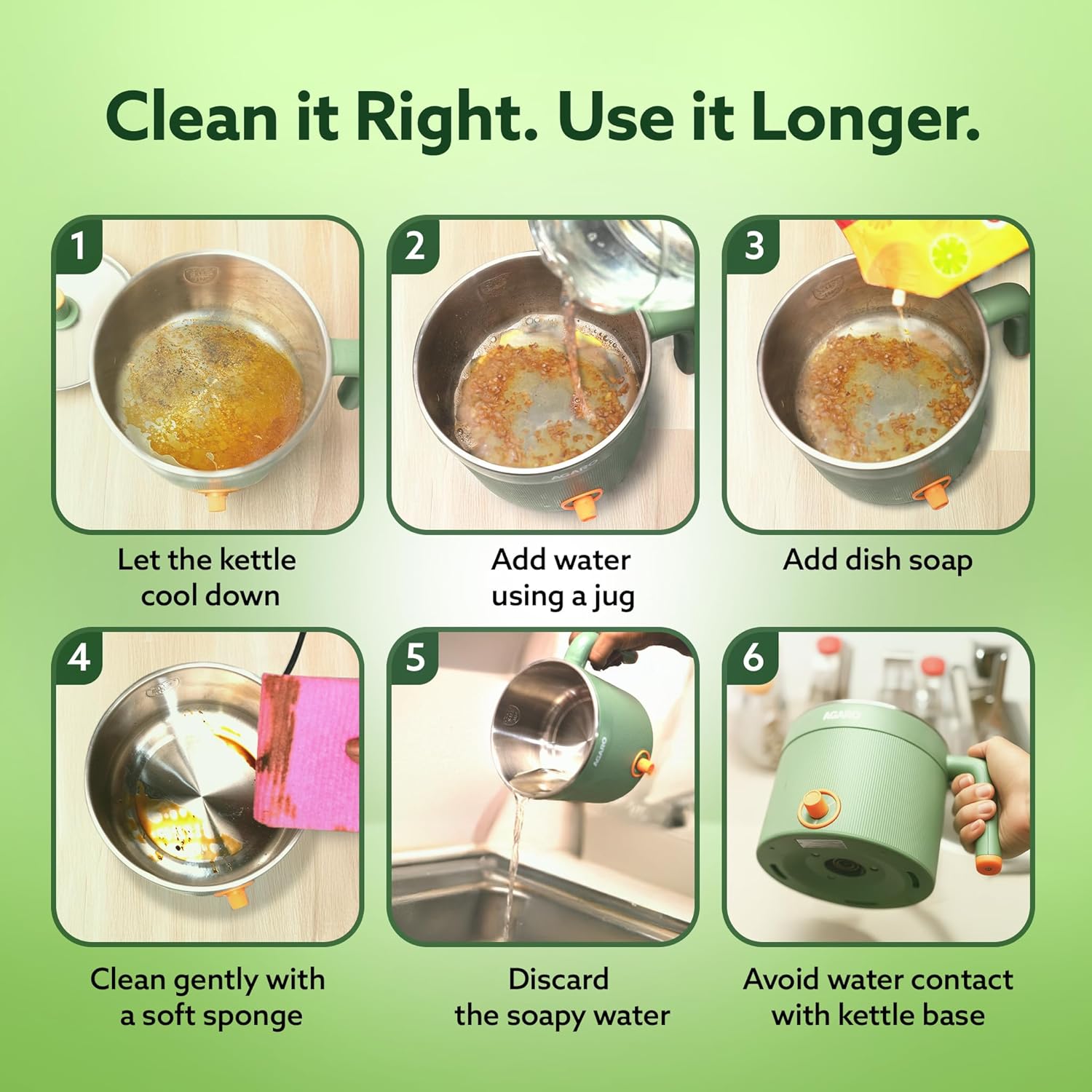 This multi-purpose electric kettle makes boiling, steaming, and cooking quick and effortless. With a 1.2L stainless steel body, variable temperature control, and detachable base β€” it’s built for everyday convenience.