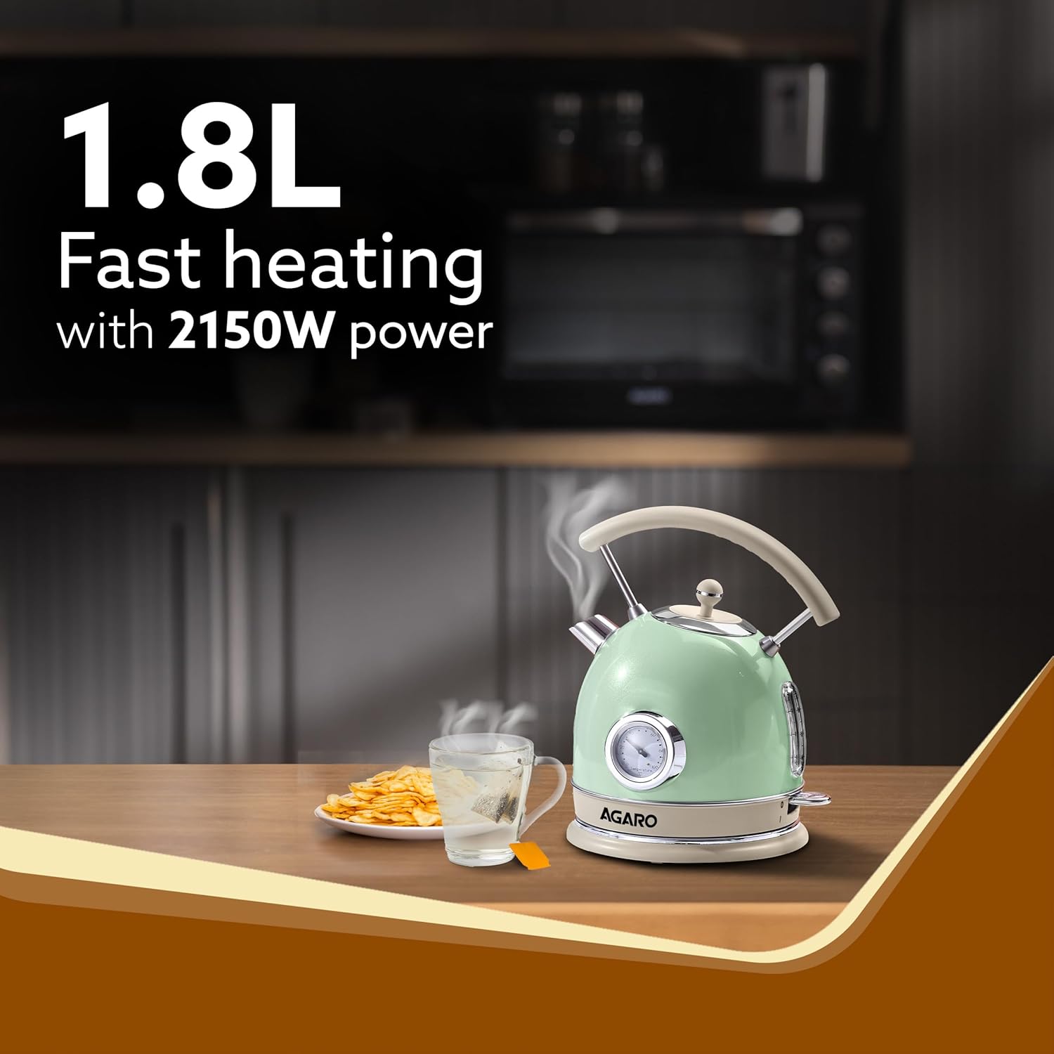 Agaro Regency Vintage Kettle | 1.8L | Stylish | Fast Boiling | Green |