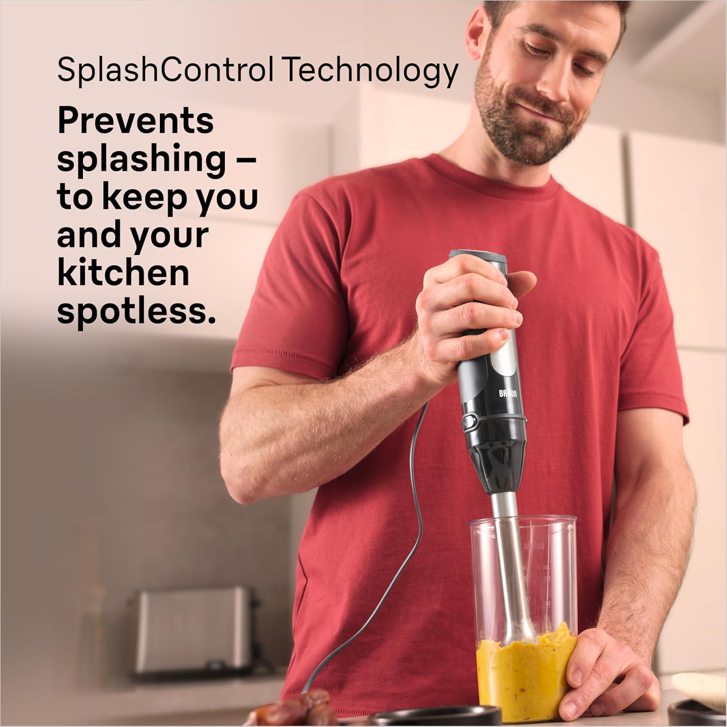 Meet the Braun Hand Blender—powerful 1000W motor, 25-speed control, and PowerBell Plus Technology for smooth, precise blending. Comes with a chopper, whisk, and 600ml beaker for versatile use. Dishwasher-safe—upgrade your kitchen with Braun now!