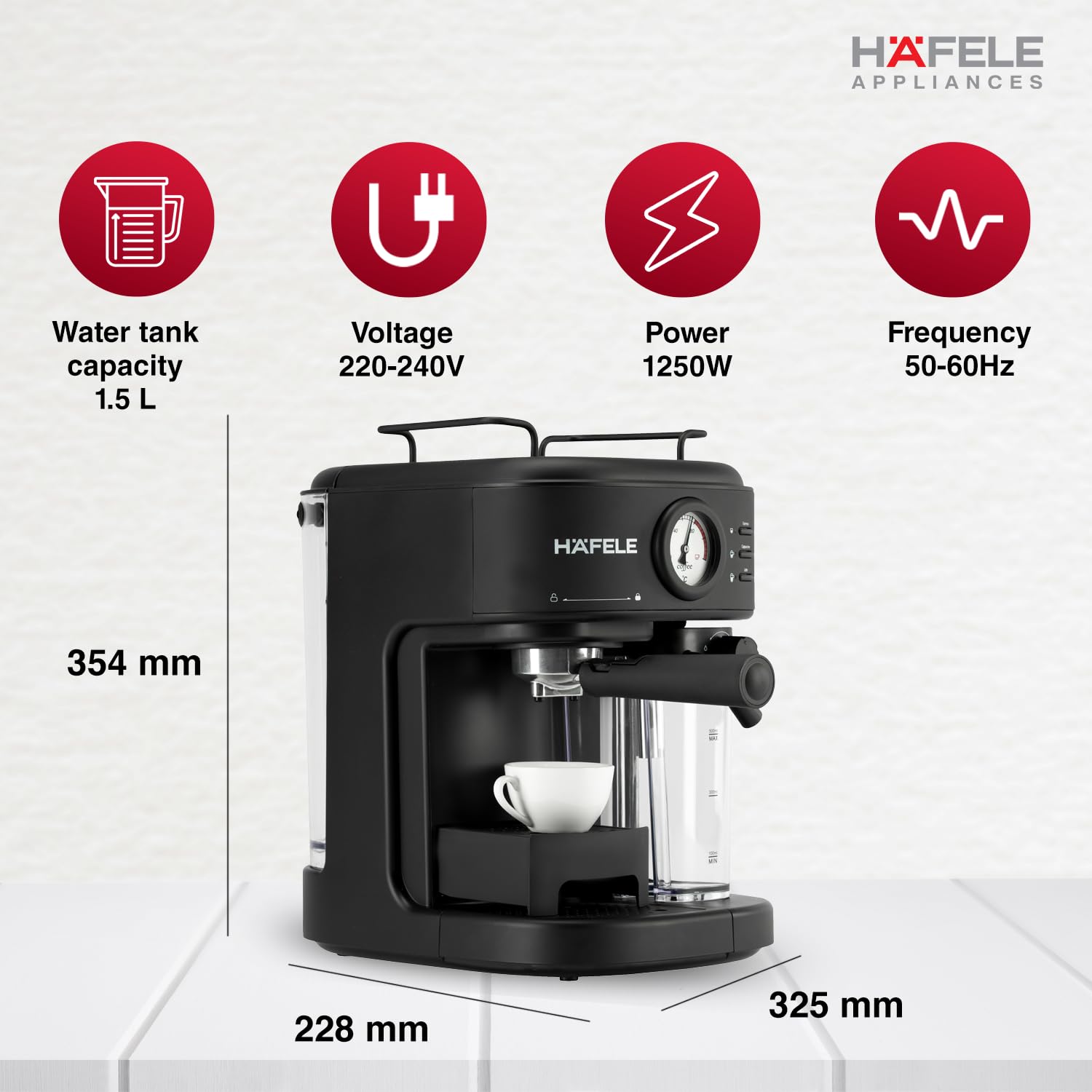 Hafele U-Kaffee Plus Coffee Machine | 15-Bar Pump Pressure | 1250W |