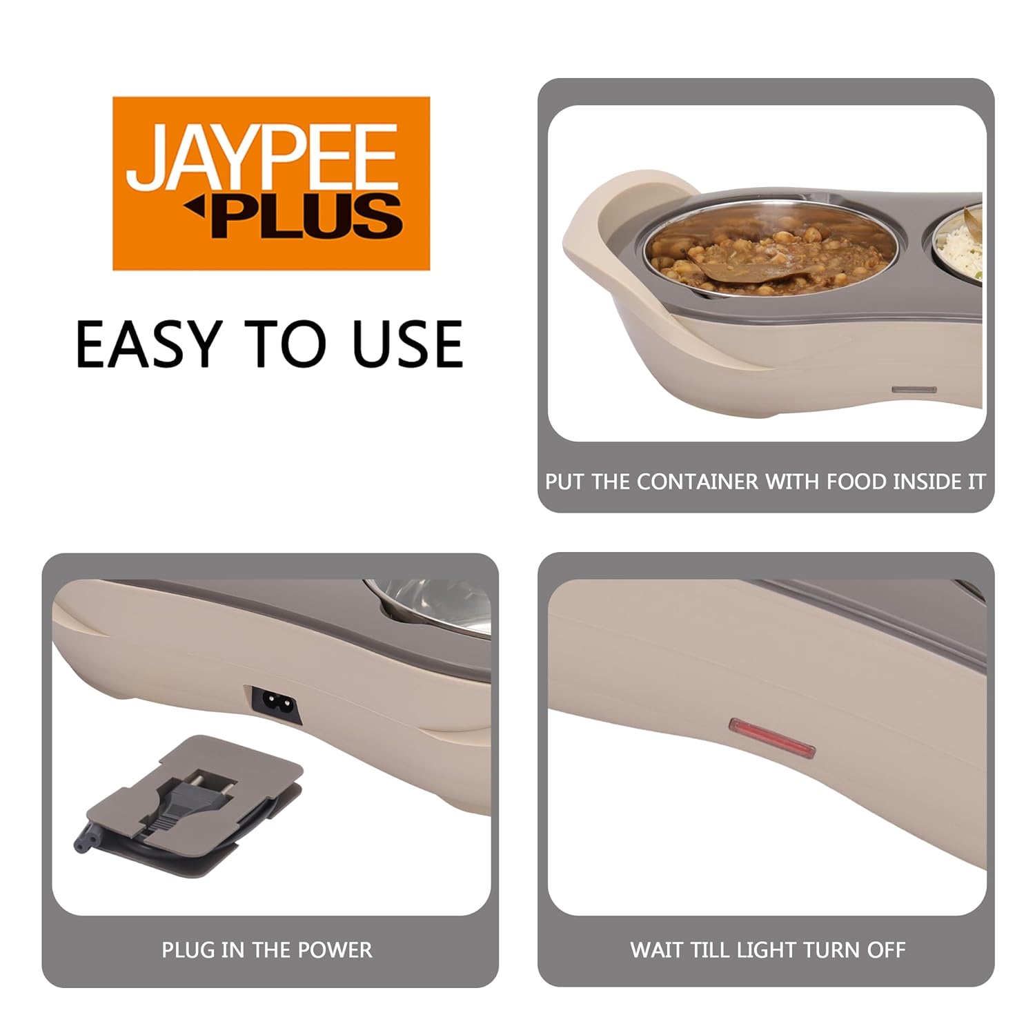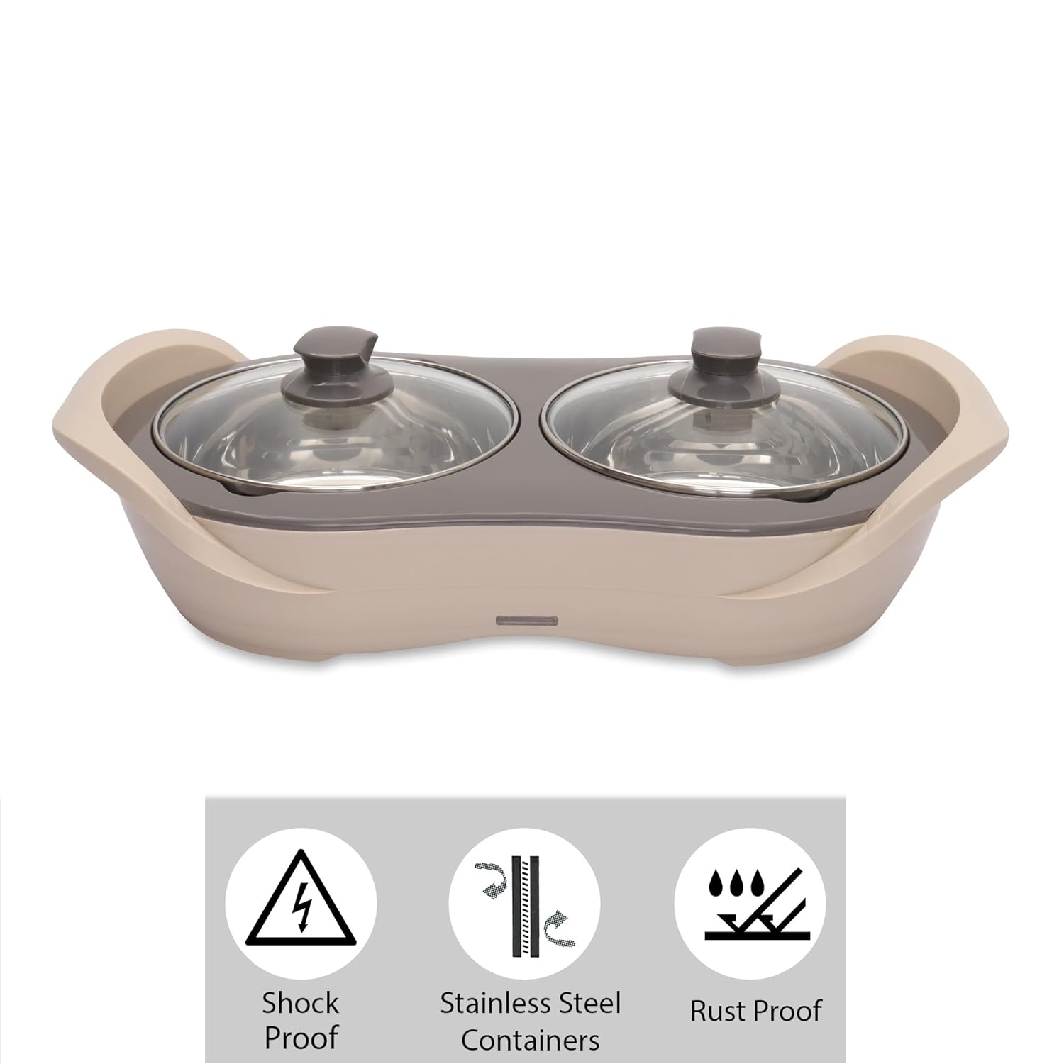Jaypee Plus 2-in-1 Stainless Steel Electric Casserole Set | 1150ml x2 | Food Warmer & Buffet Server | Beige |