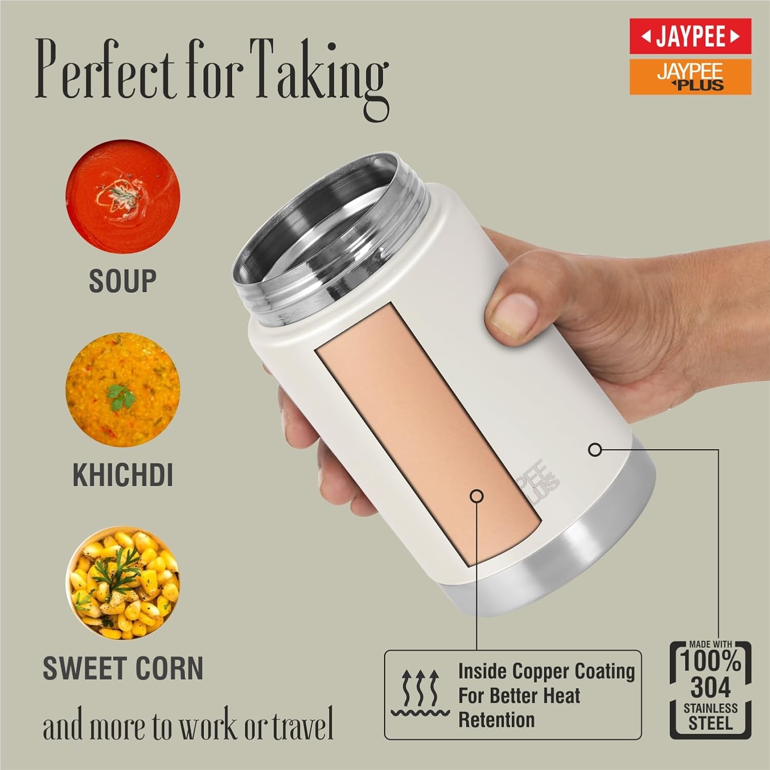 Jaypee Plus Stainless Steel Food Jar | Ivory | Leak Proof | Wide Mouth |