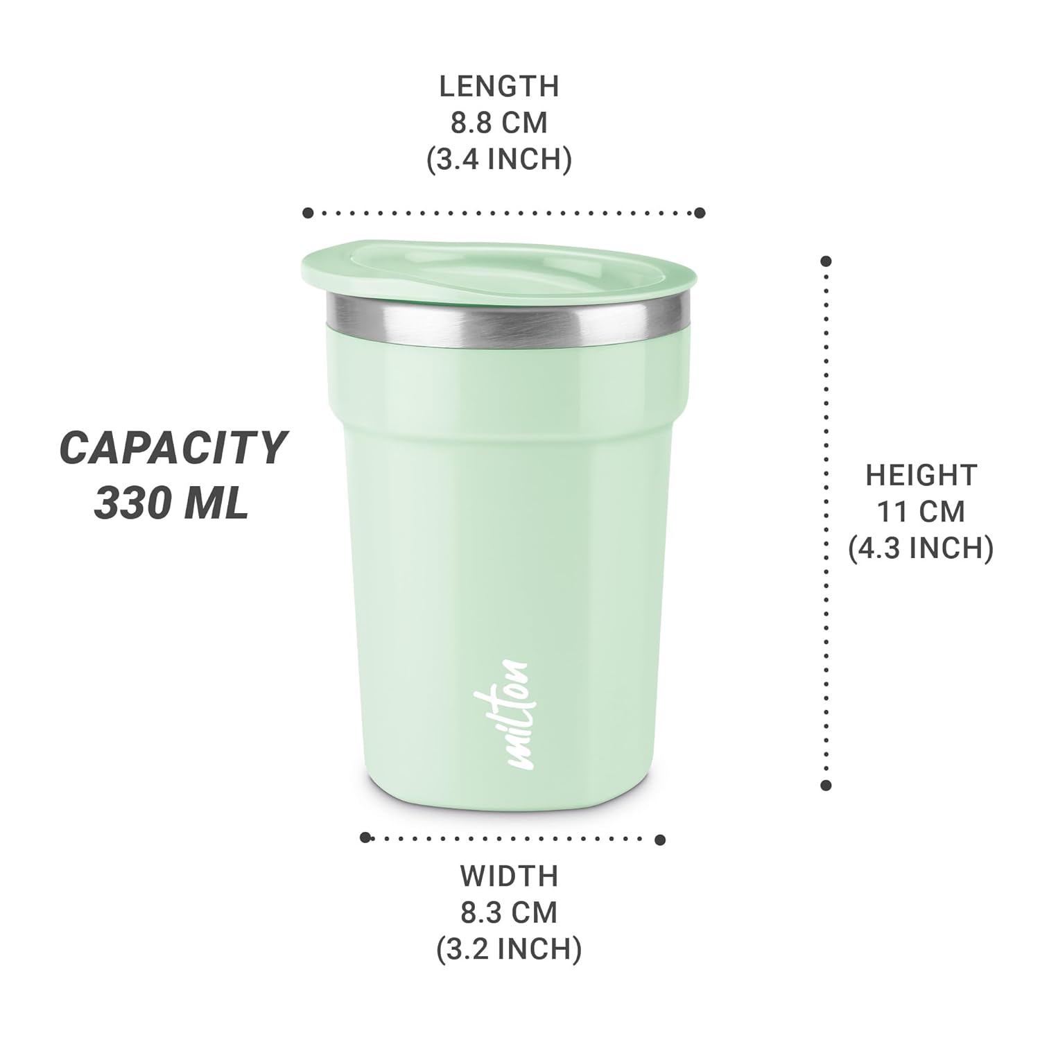 Milton Cool Touch Deccan Mug 350 ml Aqua Green is a lightweight double-wall coffee mug designed for a condensation-free experience, featuring a secure lid and comfortable handle for easy, spill-free use at home, office, or travel.