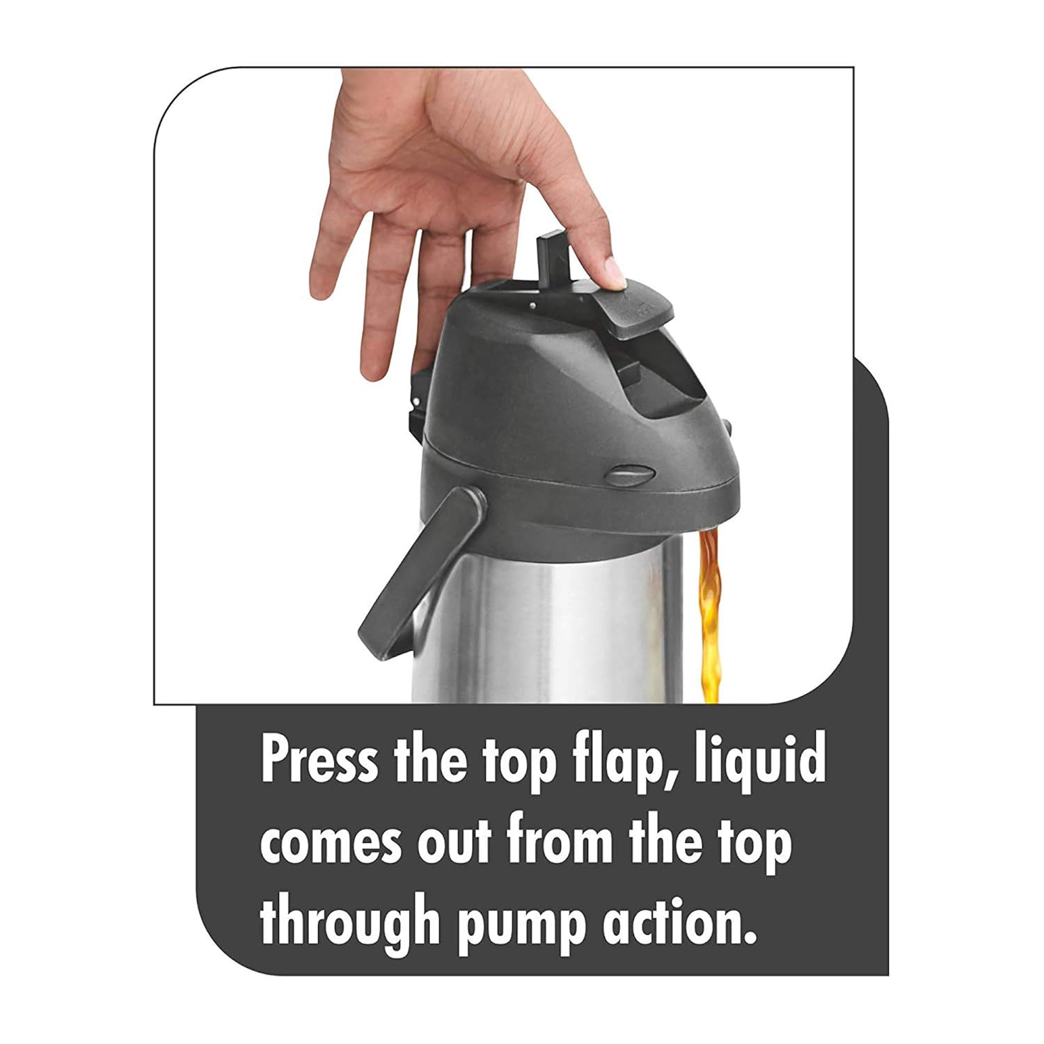 • This flask comes with pump mechanism for easy pour, handle for easy carrying and a sturdy rustproof body