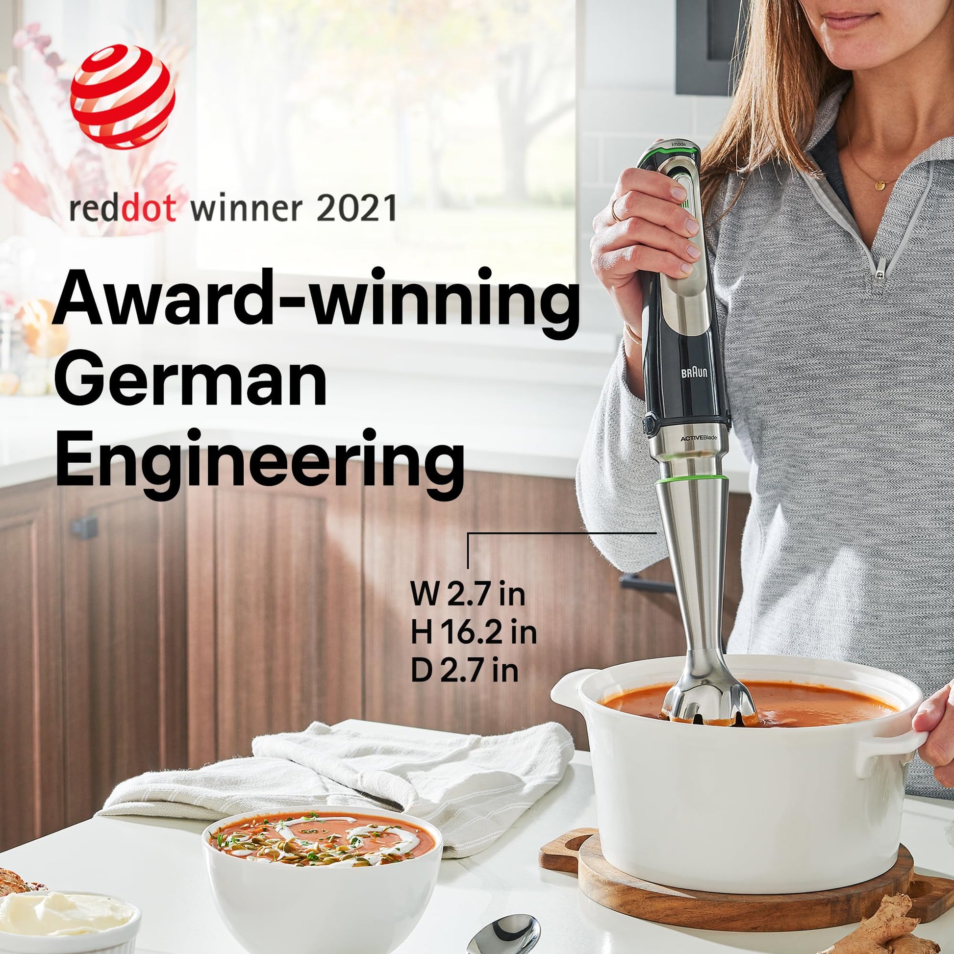 Meet the Braun MQ9187XL MultiQuick 9, featuring a turbocharged 700W motor, iMode precision control, and SmartSpeed one-hand operation for fast, effortless blending. With ActiveBlade Technology and PowerBell Plus, it crushes tough ingredients and minimizes splashing for ultra-smooth results. Upgrade to the ultimate hand blender—get the Braun MQ9187XL today!