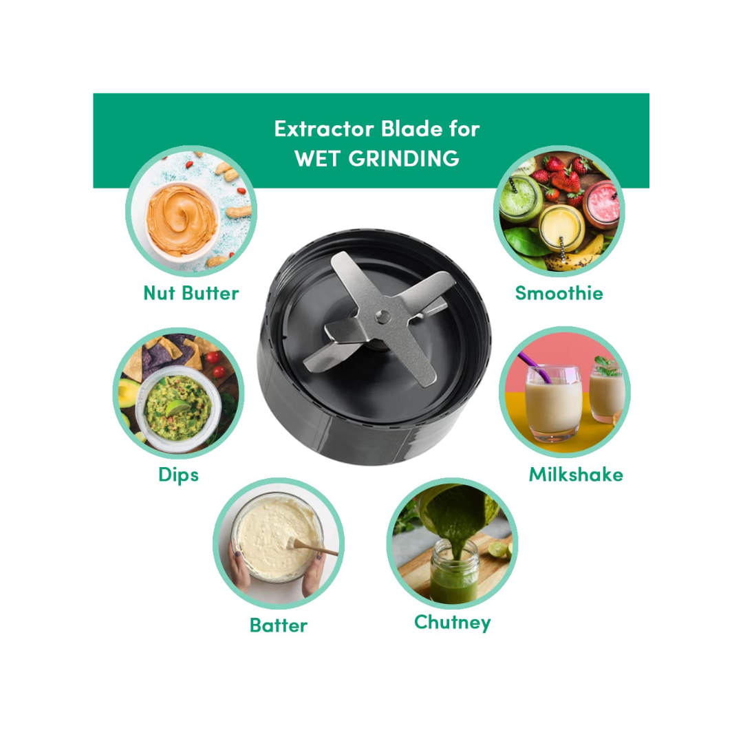 - Compact and consumes less space as compared to the bulky food processors and mixers You can drink from the same container you blend in as the blending jar doubles as a travel cup