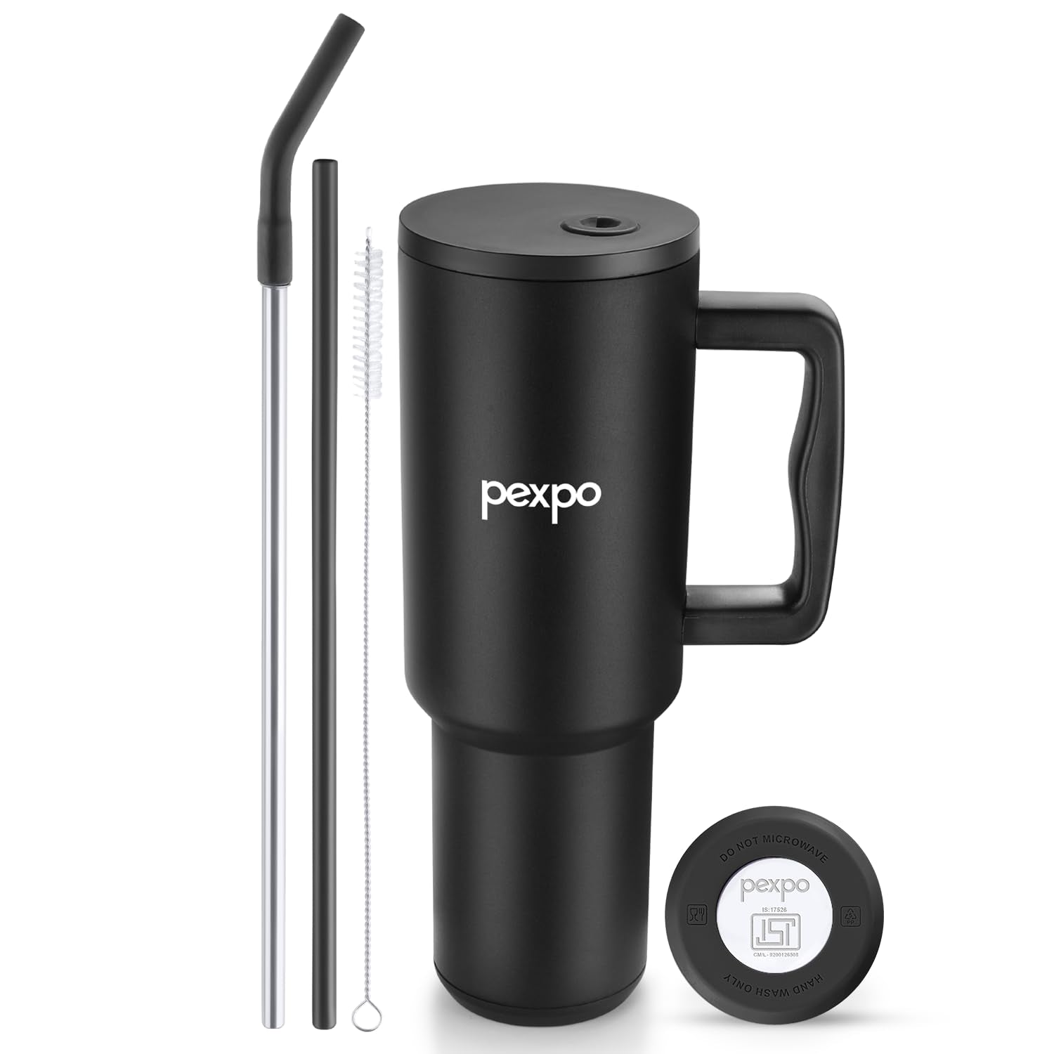 The Pexpo Stanzy Insulated Tumbler 1200 ml (Black) is a high-capacity stainless steel hydration companion crafted from premium SS304 with double-wall insulation to keep drinks hot or cold, featuring a leakproof lid, easy-carry handle, and dual straw combo for convenient everyday use at home, office, gym, or travel.