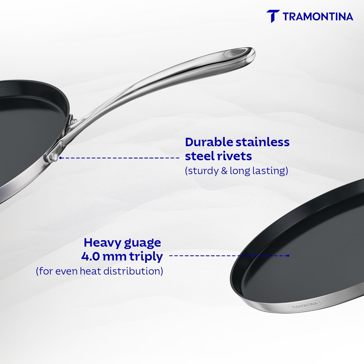 triply stainless steel body and ceramic-reinforced non-stick coating, this tawa ensures